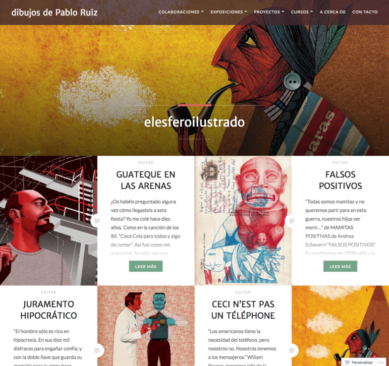 Una de los ejemplos más bonitos de los alumnos es la página de Juan Pablo Ruiz. Ilustrador y uno de los profesores de la escuela. https://juansoloilustra.wordpress.com/