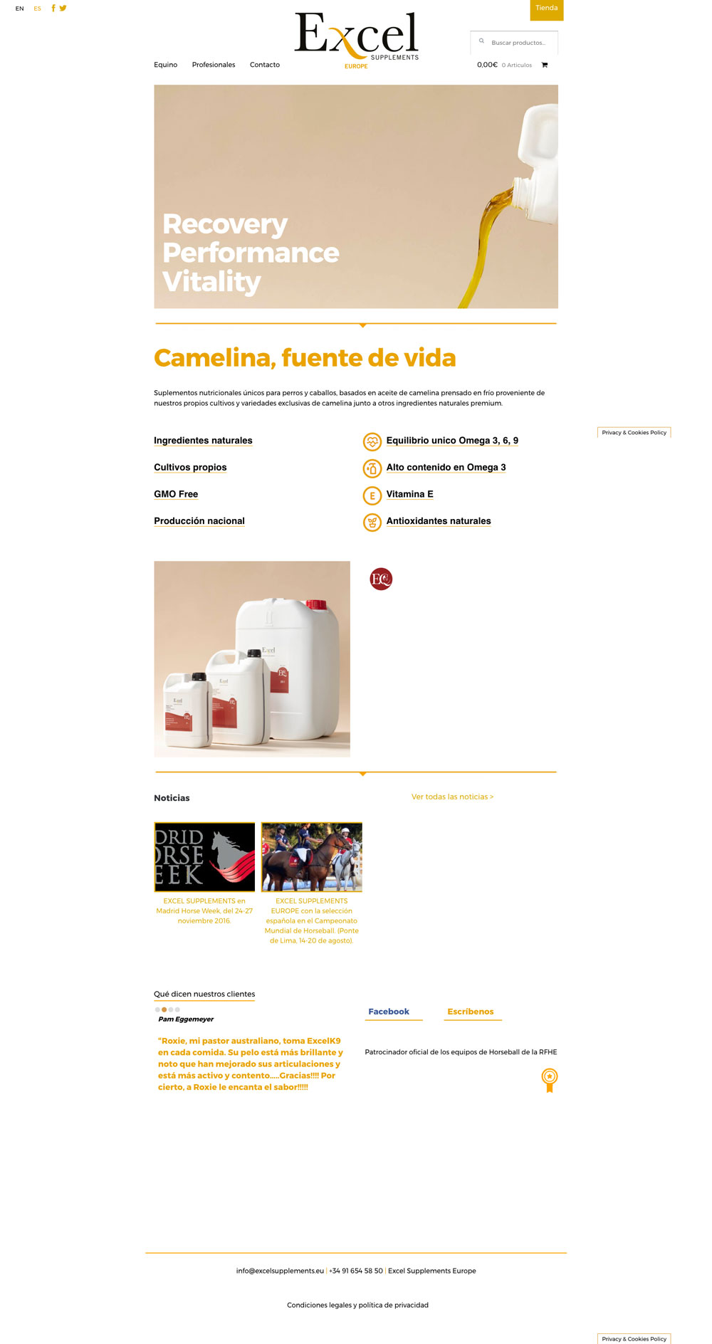 Desarrollo de tienda online para la marca suplementos alimenticios «Excel Supplements Europe» sobre un diseño de Jorge Fernández Puebla. Gestionada mediante WordPress y WooCommerce.